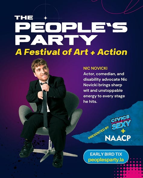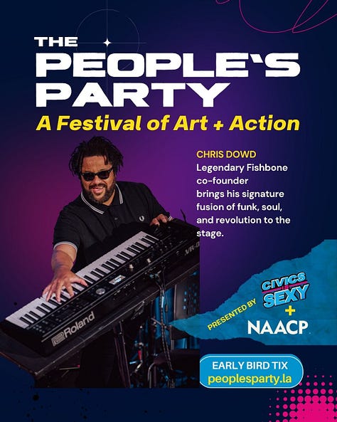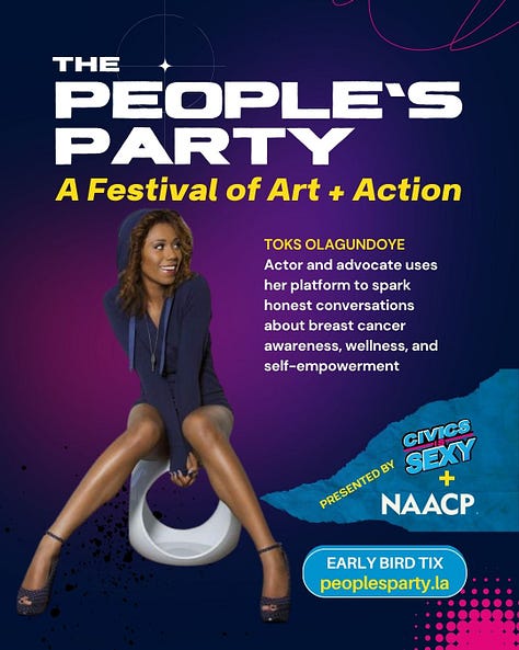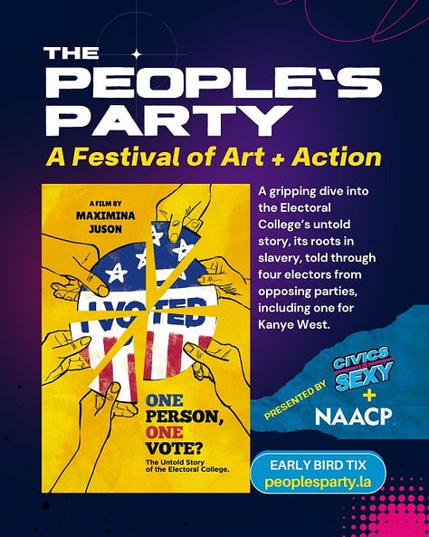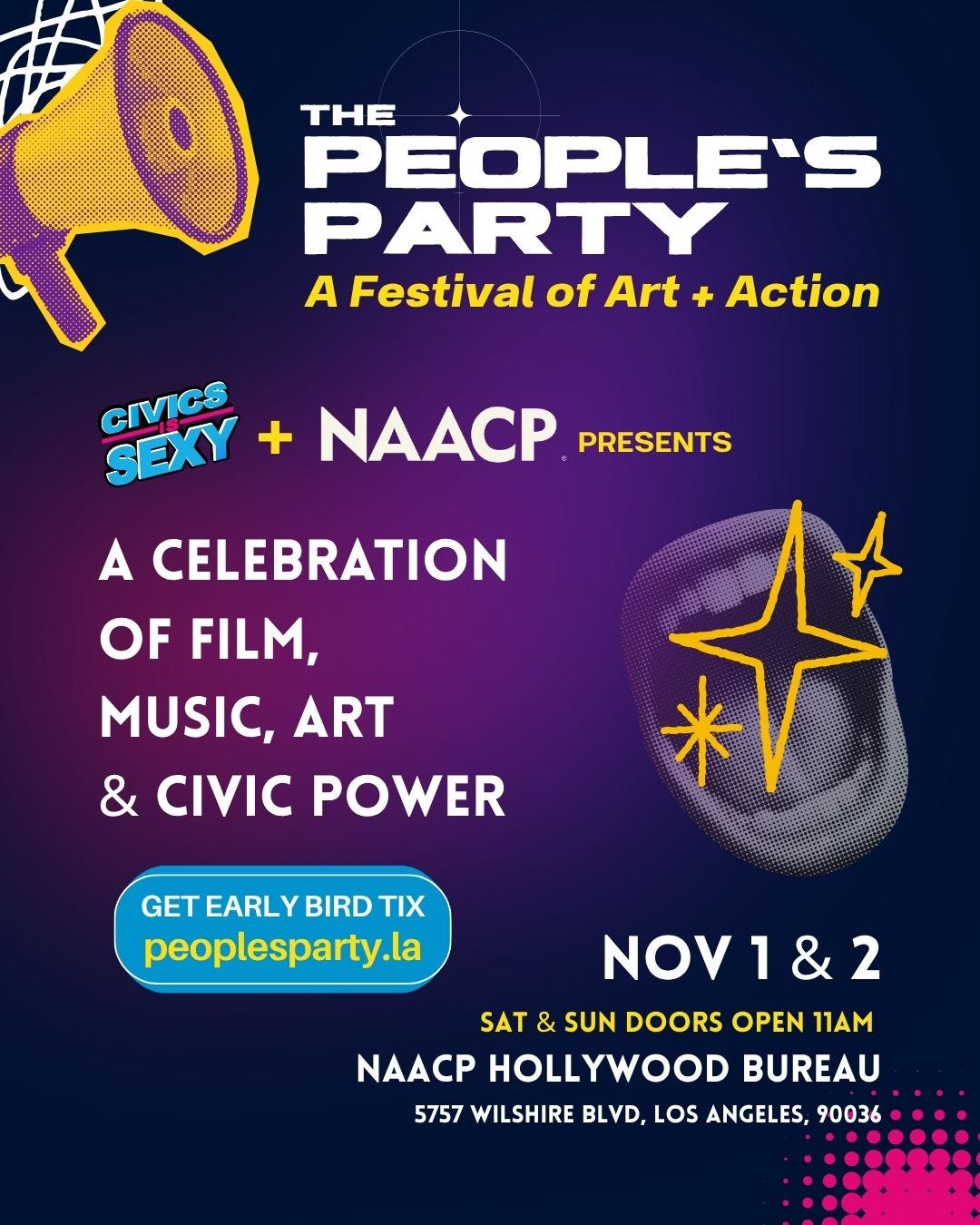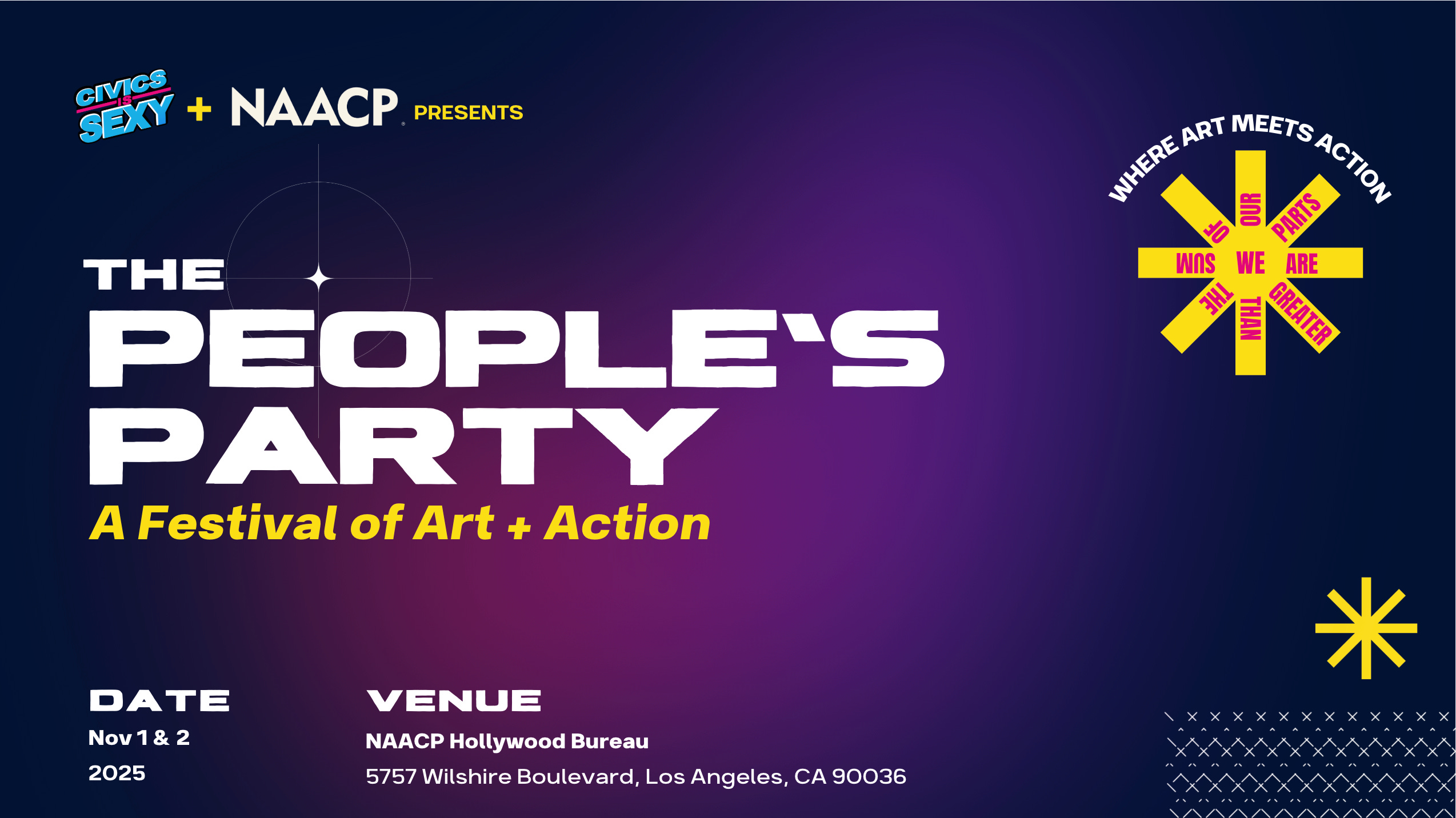 That’s the question that sparked The People’s Party—a two-day festival that fuses film, art, and music with the civic and social justice organizations shaping our democracy. Co-presented by the enduring NAACP and my new organization Civics Is Sexy, it’s part celebration, part civics immersion, and all community.