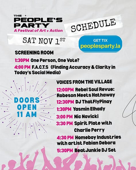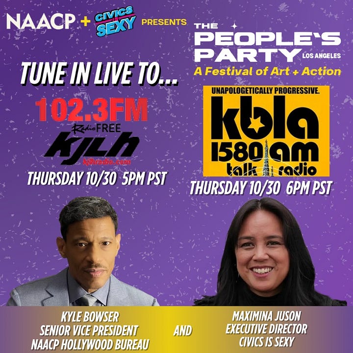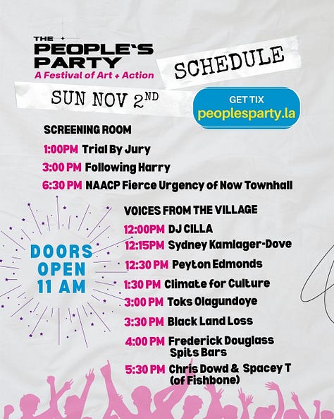 If you’re in Los Angeles this Saturday and Sunday, November 1-2, join us at the NAACP Hollywood Bureau. Doors open at 11am. Learn more at peoplesparty.la.